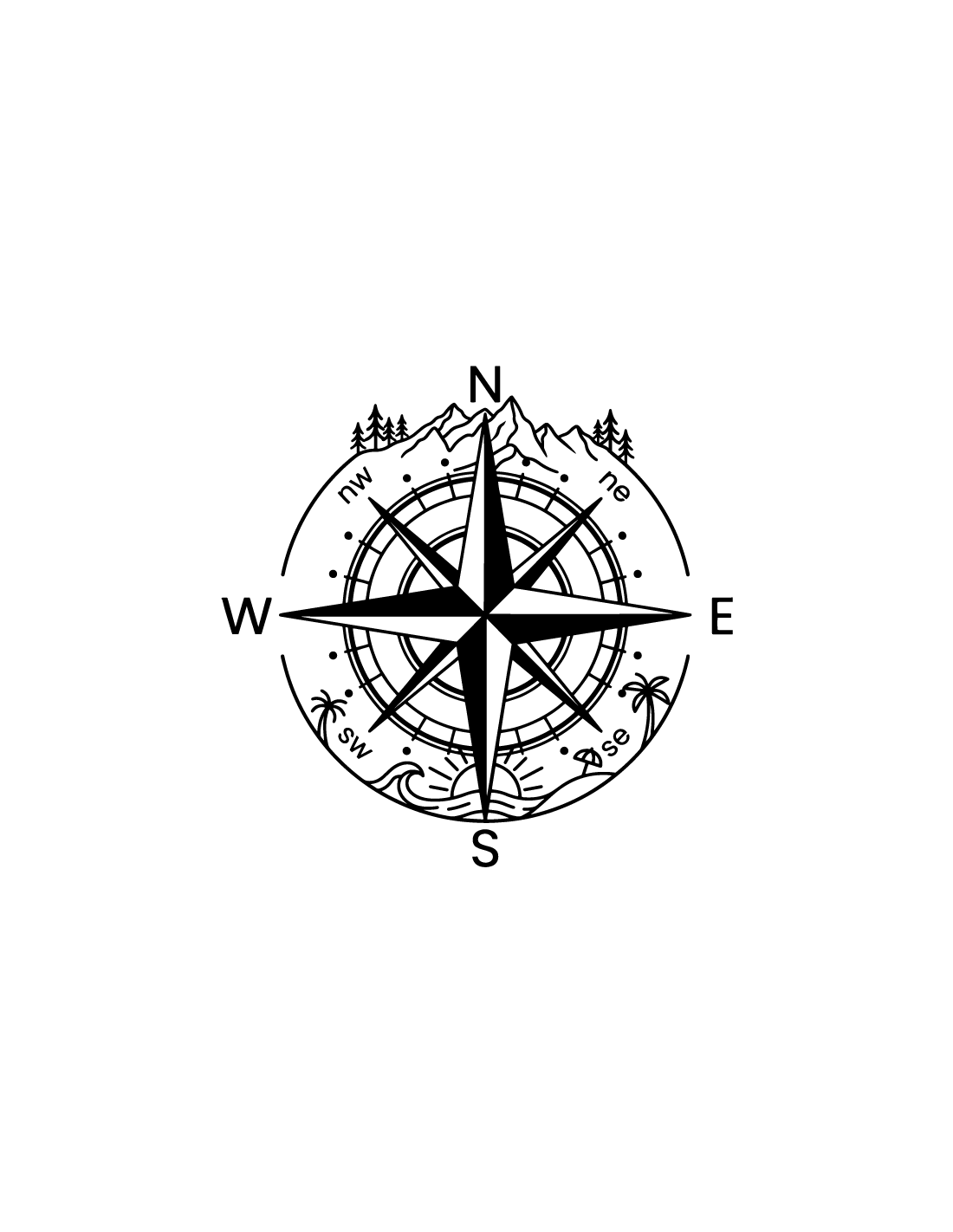 • Esprit Aventure & Évasion : Une boussole magnifiquement illustrée pointant vers les sapins et les sommets enneigés au Nord, et vers les palmiers, les vagues et le soleil au Sud.